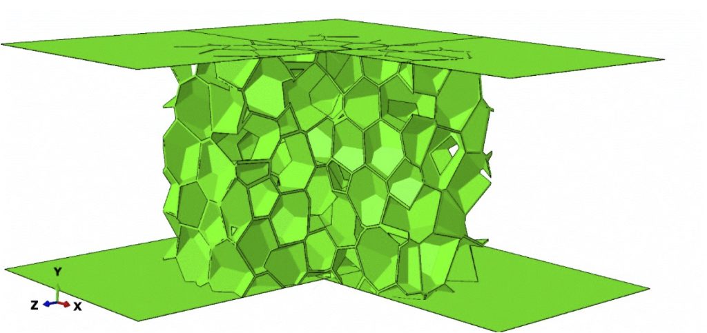 The mechanical response of isotropic elastomeric closed-cell foams with Classical Voronoi microstructures is examined through three-dimensional finite element simulations. The study focuses on finite-strain uniaxial compression, complemented by infinitesimal-strain shear and hydrostatic loading. Random foam geometries with porosities between 77% and 95% and narrow pore-size distributions were generated by subtracting irregular Voronoi polyhedra, constructed from […]